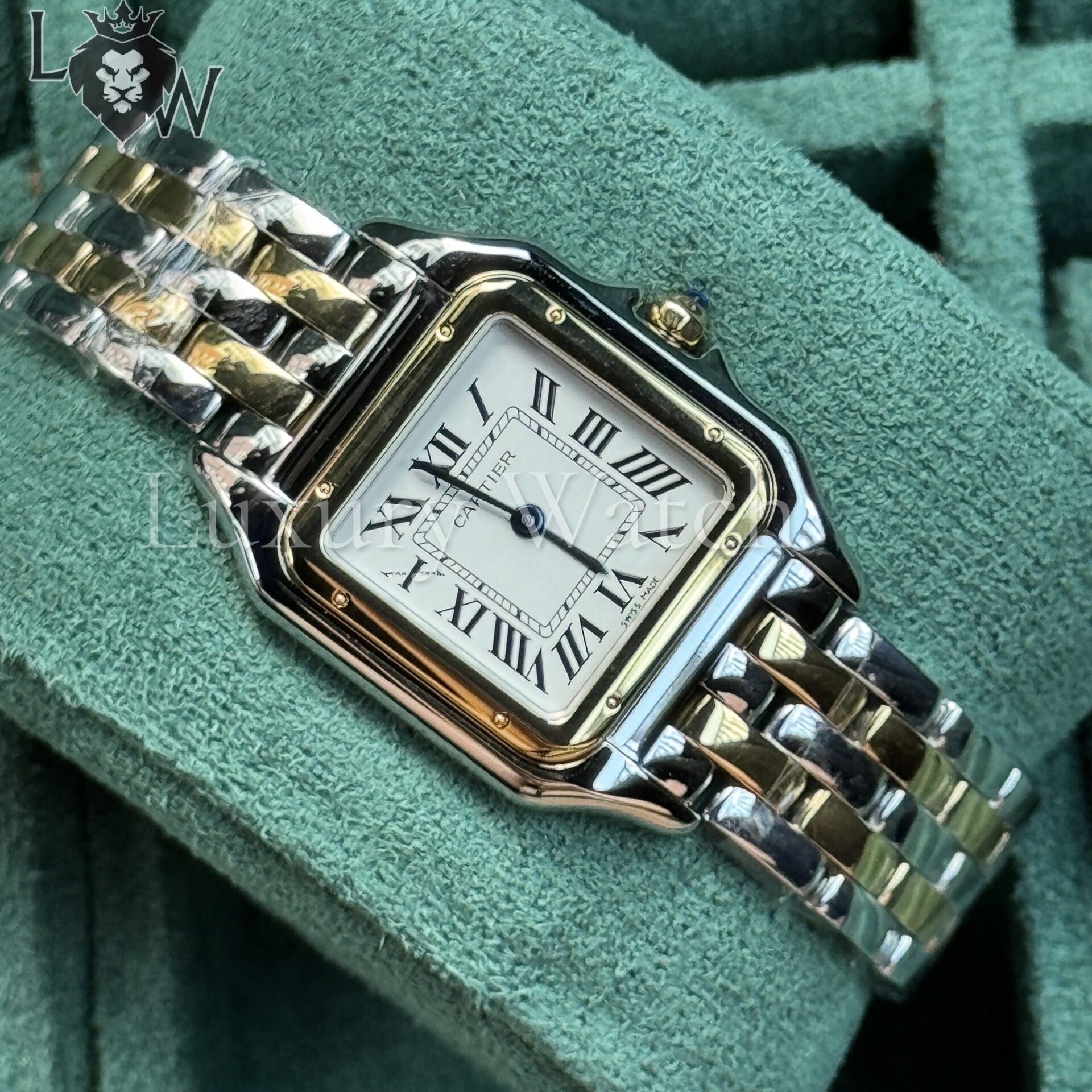 Часы Cartier Panthere Medium W2PN0007 выполнены из нержавеющей стали и 18-каратного розового золота, что придает им изысканный и утонченный вид. Диаметр корпуса составляет 27 мм, что делает их идеальным выбором для тех, кто предпочитает средний размер часов. Белый циферблат с римскими цифрами и стрелками в форме меча добавляет классический штрих к современному дизайну.