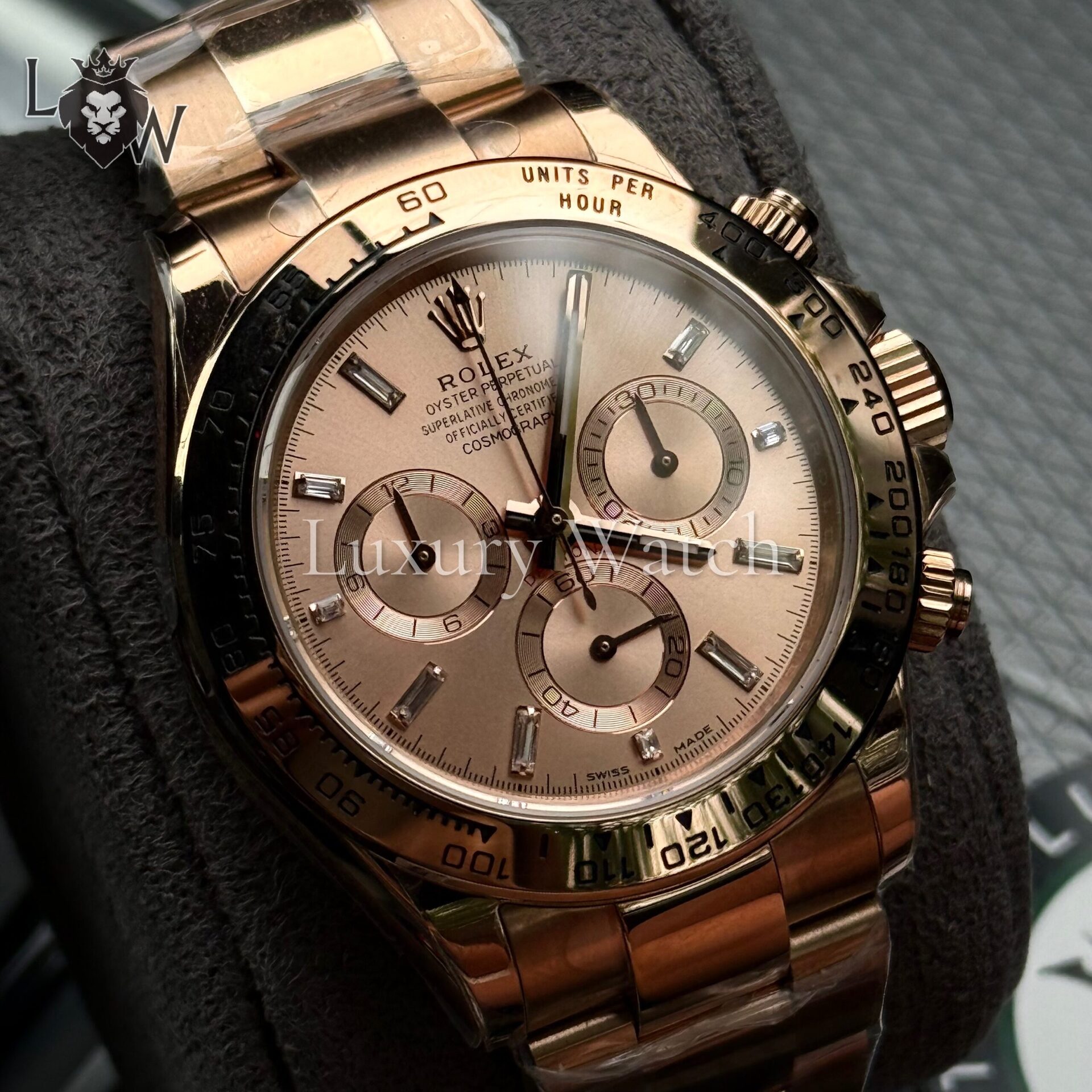 Модель Rolex Cosmograph Daytona 116505-0012 оснащена автоматическим механизмом калибра 4130, который обеспечивает точность и надежность. Корпус выполнен из 18-каратного розового золота, что придает часам изысканный и утонченный вид. Диаметр корпуса составляет 40 мм, что делает их идеальными для любого запястья.