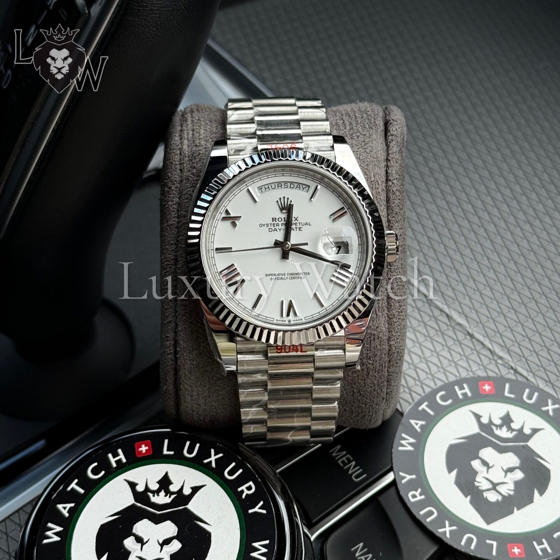 Браслет President из белого золота 18 карат с раскладывающейся застежкой Crownclasp обеспечивает комфортное ношение и надежную фиксацию на запястье. Эти часы станут идеальным дополнением к вашему гардеробу и подчеркнут ваш статус и вкус.