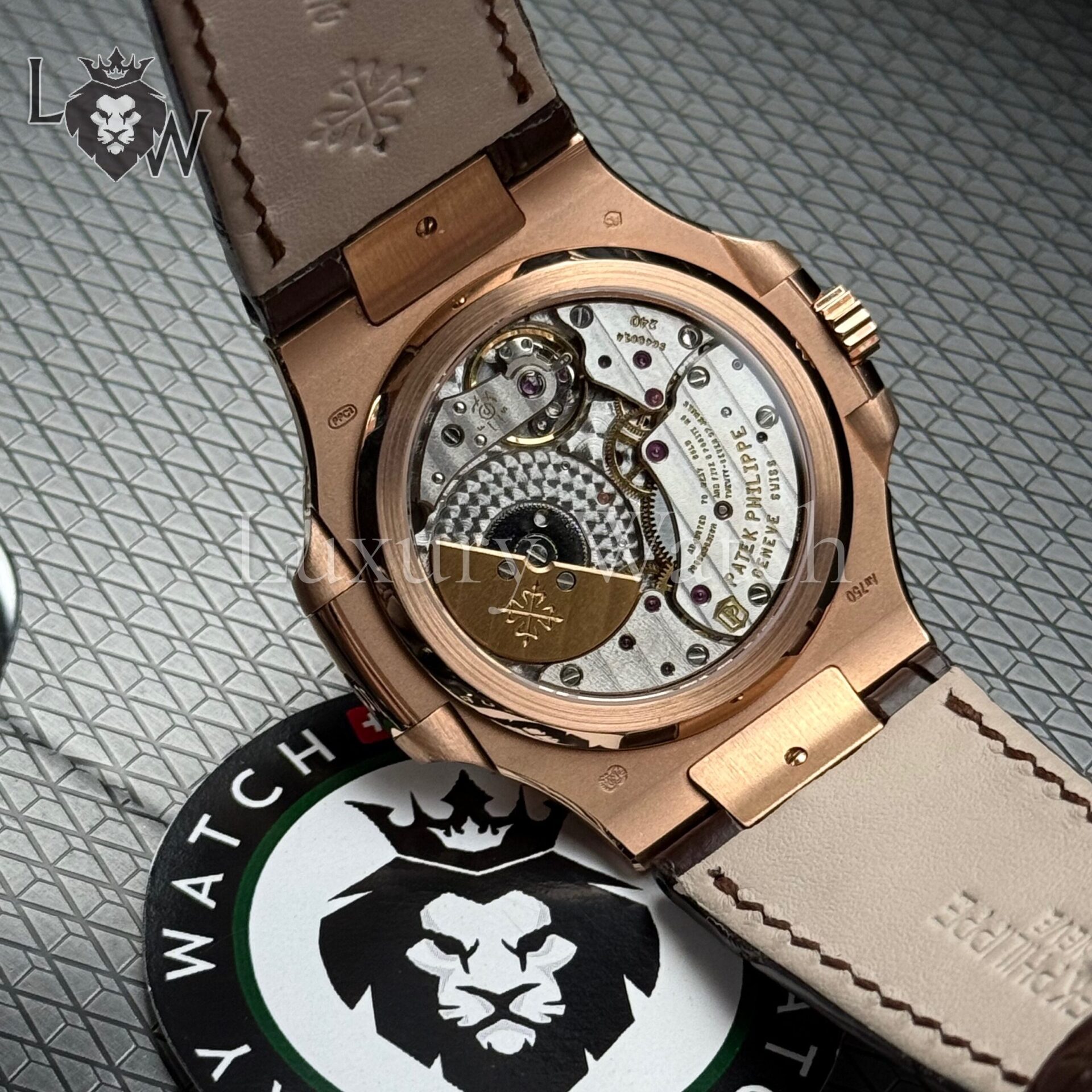Часы Patek Philippe Nautilus Power Reserve 5712R-001 представляют собой воплощение элегантности и технического совершенства, характерного для швейцарского часового искусства. Эти часы, выполненные из розового золота, сочетают в себе изысканный дизайн и передовые технологии, что делает их идеальным выбором для ценителей роскоши и точности.