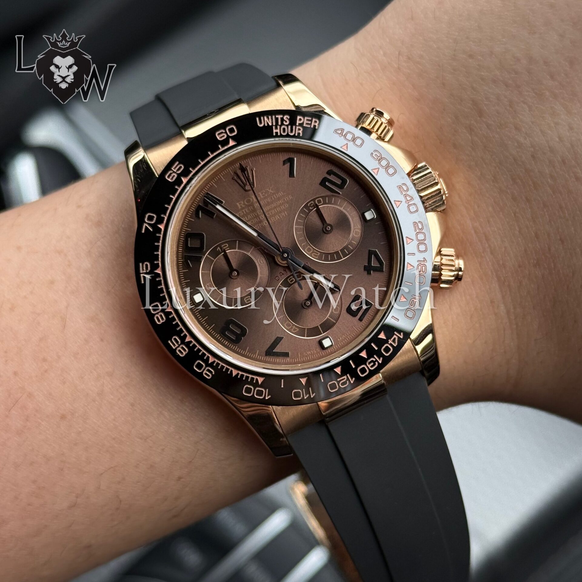 Модель Rolex Cosmograph Daytona 116515LN-0015 оснащена автоматическим механизмом, который обеспечивает точность и надежность. Корпус выполнен из розового золота 18 карат, что придает часам изысканный и утонченный вид. Черный керамический безель с тахиметрической шкалой позволяет измерять скорость до 400 километров в час.